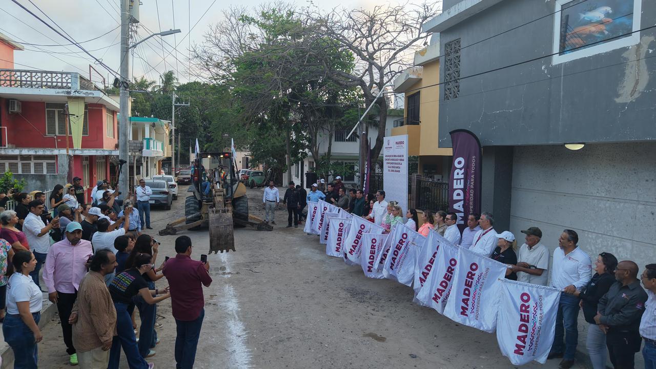 El Gobierno de Ciudad Madero, encabezado por el presidente municipal Erasmo González Robledo, continúa avanzando con el programa de obra pública 2026, llevando a cabo el segundo día de arranques de importantes acciones de pavimentación en diversos sectores de la ciudad, como parte de una estrategia integral para mejorar la infraestructura urbana y atender las principales demandas de la ciudadanía.