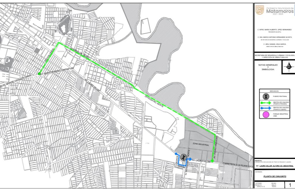 El Gobierno Municipal de Matamoros informa que a partir de las 6:00 horas de este sábado y hasta las 18:00 horas del mismo día, uno de los tramos de la avenida Lauro Villar será cerrado a la circulación a fin de que Comité de Mejoras del Parque Ciudad Industrial concluya los trabajos del puente peatonal, los cuales tenía inconclusos desde hace varios años.