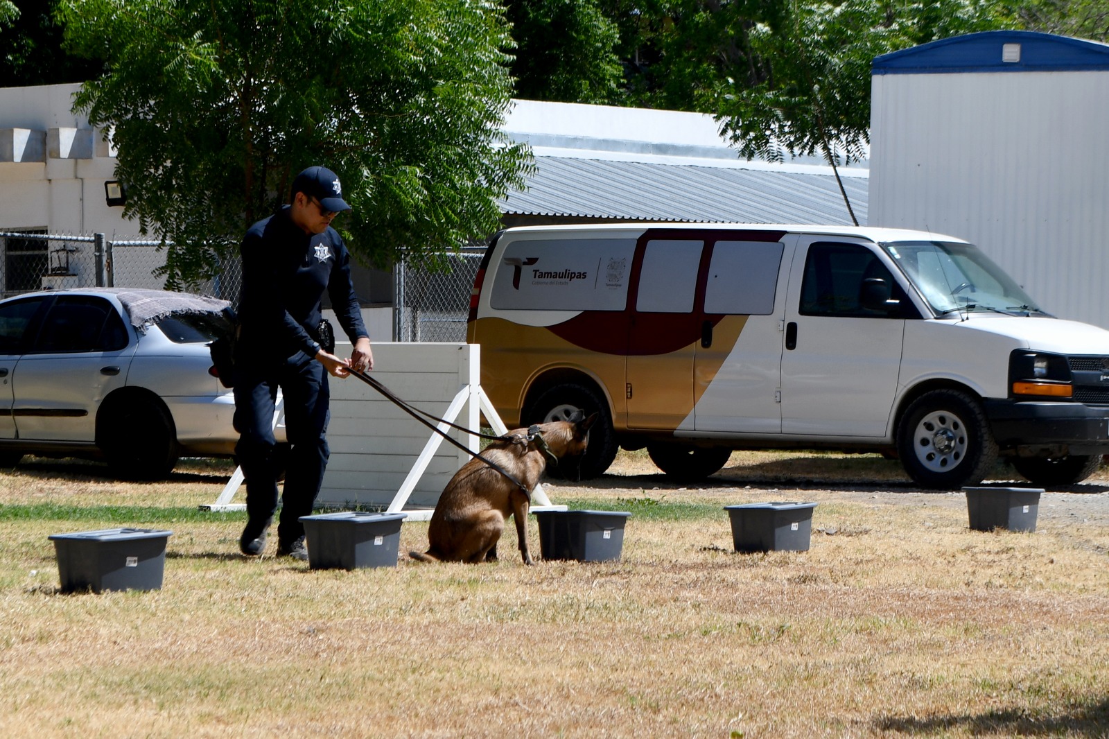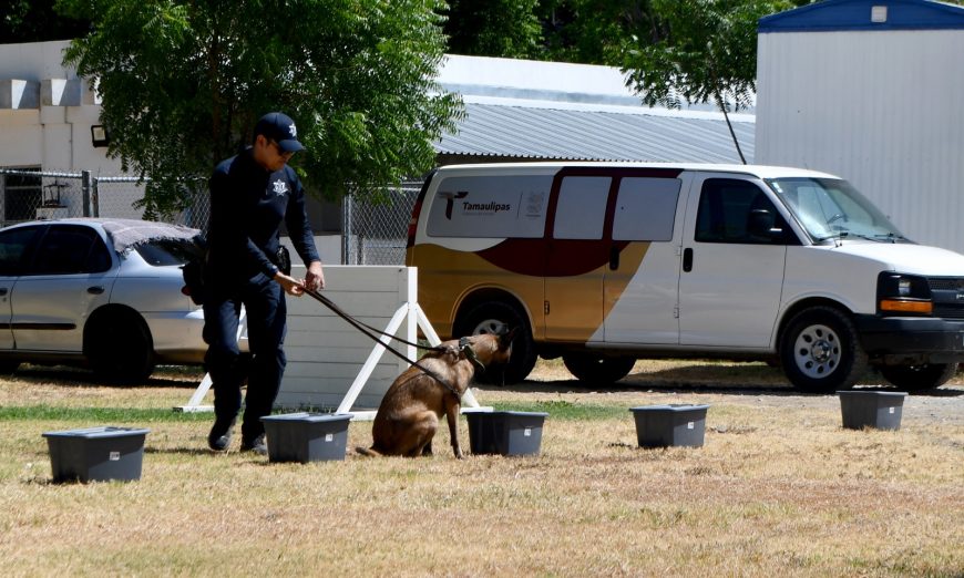 Posteriormente, los caninos son llevados a prácticas en campo, en donde se cuentan con las máximas medidas de protección a su integridad para evitar afectaciones debido a las inclemencias del clima y al agotamiento físico, de esta manera, la SSPT garantiza a las y los tamaulipecos elementos capacitados para salvaguardar su seguridad en cada una de las divisiones de la Guardia Estatal.