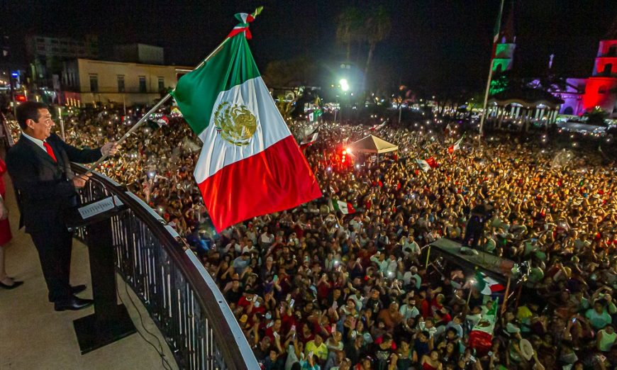 Enseguida con la bandera en sus manos, el Alcalde López Hernández hizo repicar la campaña, vitorear a los héroes y ondear frente a los miles de matamorenses la majestosa enseña nacional recordando a los iniciadores del movimiento de Independencia.