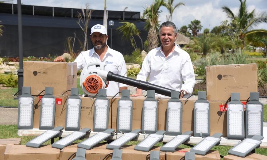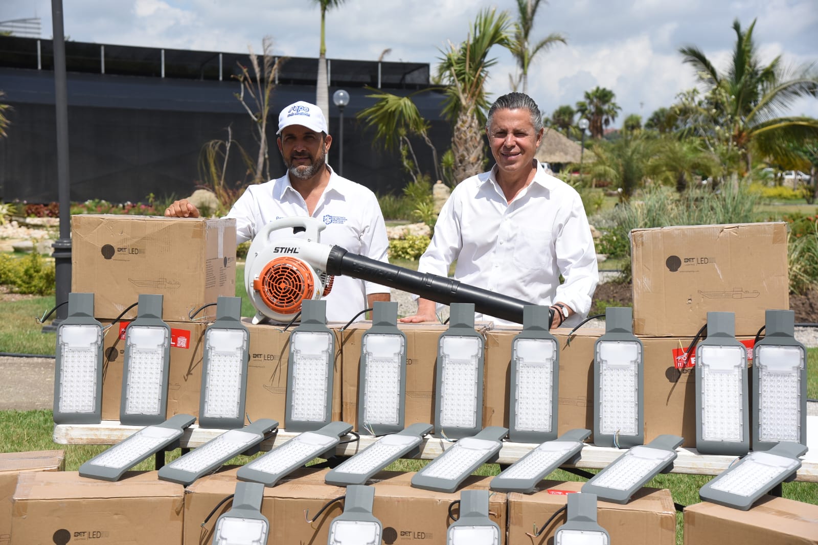 El mandatario detalló que además de las 500 luminarias de 50 whats y provistas de su respectiva foto-celda, la Secretaría de Servicios Públicos recibió dos podadoras industriales y una sopladora de aire manual, que serán destinadas a la limpieza de los parques Fray Andrés de Olmos y Laguna del Carpintero.