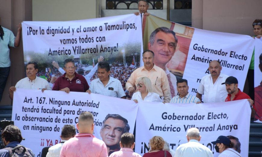 Cd. Victoria, Tam.- Abogados, organizaciones civiles y empresarios, realizaron este día un acto de apoyo al Gobernador electo Américo Villarreal Anaya y exigieron al Tribunal Federal Electoral resuelva urgentemente la elección de Tamaulipas, además de que acusaron al Magistrado Reyes Rodríguez Mondragón de estar retardando el veredicto para anular la elección.