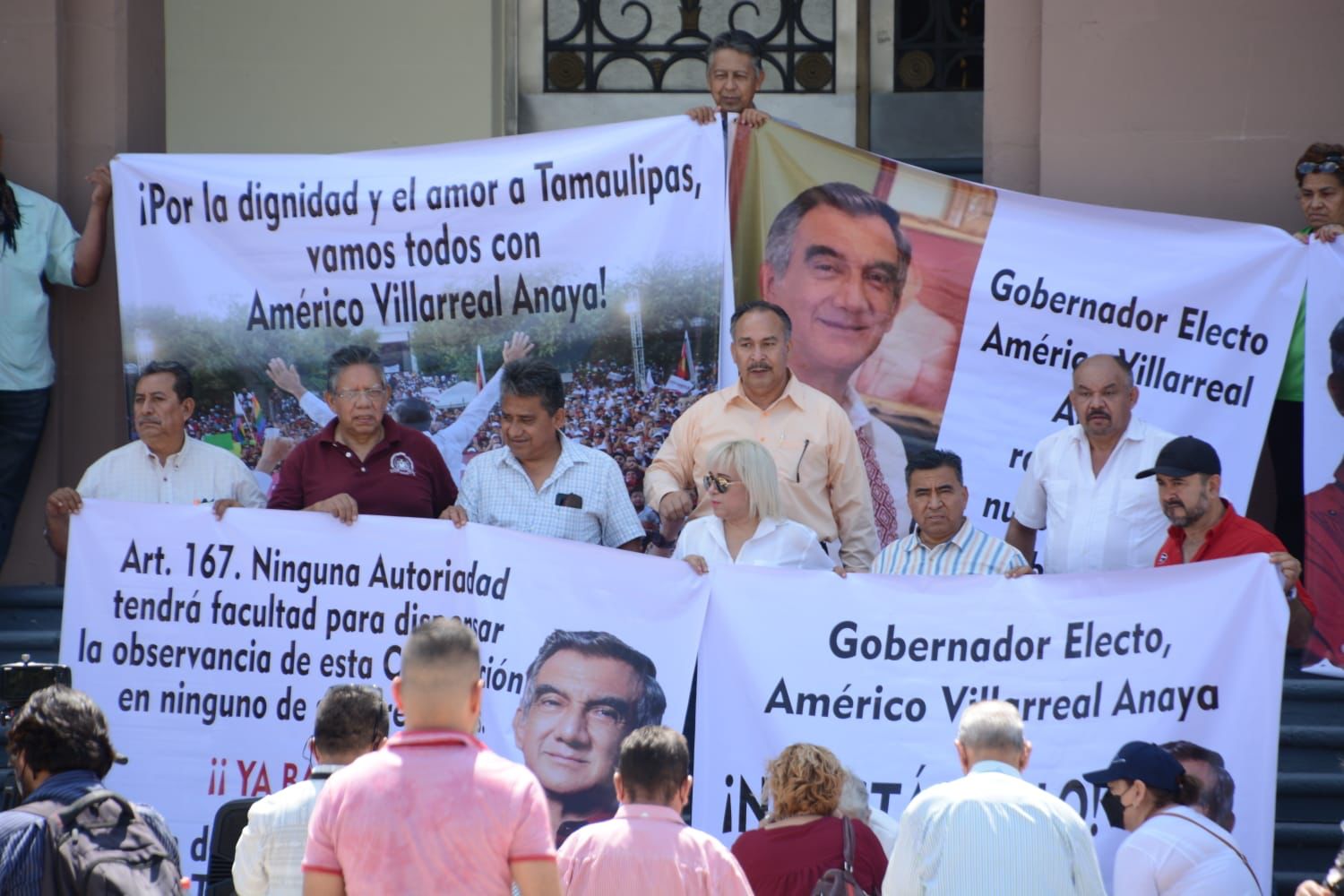 Desde el mediodía profesionistas, amas de casa, colonos y personas llegadas de diversas comunidades rurales plasmaron su nombre y firma en una carta de apoyo al doctor Américo Villarreal Anaya, en las escalinatas del Palacio de Gobierno, desde donde exigieron el respeto a la voluntad de más de 731 mil tamaulipecos que votaron a favor del hoy Gobernador electo.
