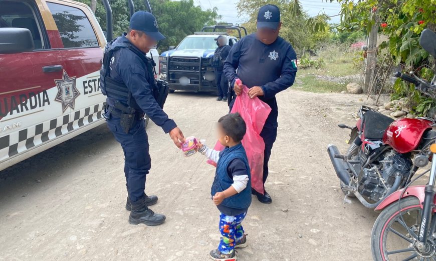 González, Tamaulipas.- Como parte de las actividades de proximidad social que la Guardia Estatal lleva a cabo en diferentes municipios, personal de la coordinación municipal de González entregó juguetes a niños que habitan en este municipio.
