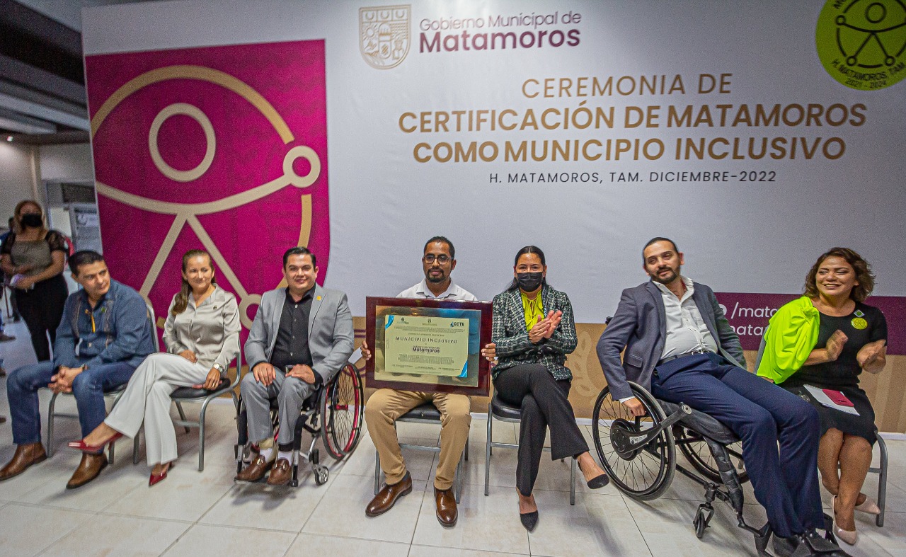 Esta tarde Matamoros se convirtió en el primer municipio de Tamaulipas, en recibir el distintivo como Municipio Inclusivo al implementar con éxito el modelo más vanguardista establecido por la ONU para la atención de la población con discapacidad: El Modelo Social.