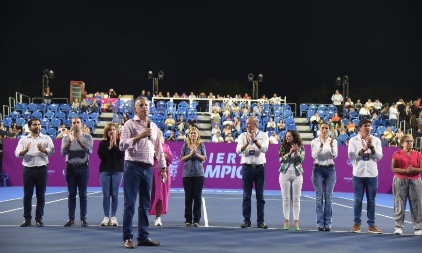 El mandatario explicó que, además de las canchas de tenis, el Gobierno local ha llevado a cabo la construcción de un moderno estadio de Softbol; dos canchas de futbol de pasto sintético, el pórtico principal de la ciudad deportiva; además de la modernización de los campos de béisbol y la rehabilitación integral de las techumbres en las canchas de basquetbol, entre otros espacios, lo que representa más de 80 millones de pesos invertidos para ampliar y modernizar la infraestructura deportiva en beneficio de la población que habita en el municipio y en la zona conurbada.