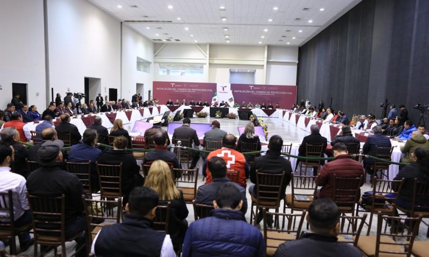 Al tomar la protesta a los integrantes del Consejo Estatal de Protección Civil, este martes en el Polyforum de ciudad Victoria y ante la presencia de mandos militares, representantes de dependencias federales y estatales, así como de presidentas y presidentes municipales, el gobernador Américo Villarreal exhortó a adoptar medidas necesarias en materia de prevención de desastres naturales y contingencias.