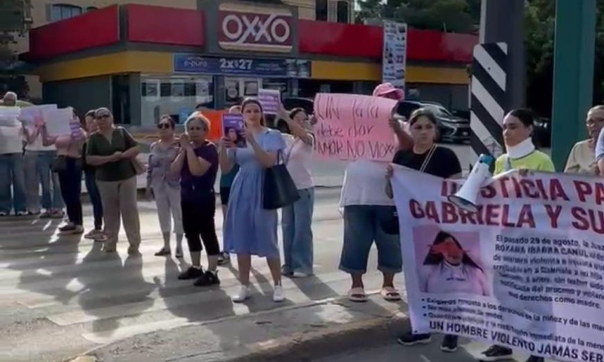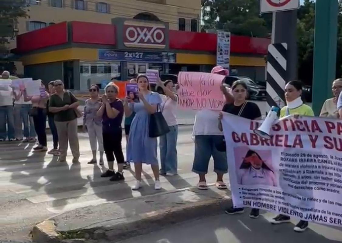 Tampico.- (Antonio Pecina) Gabriela Salazar acompañada de familiares y amigos bloquearon este tarde la avenida Hidalgo a la altura de Ejército Nacional exigiendo justicia después de que una juez le retirara arbitrariamente la custodia de su hija Gaby otorgándosela a su padre Alejandro Ávila.