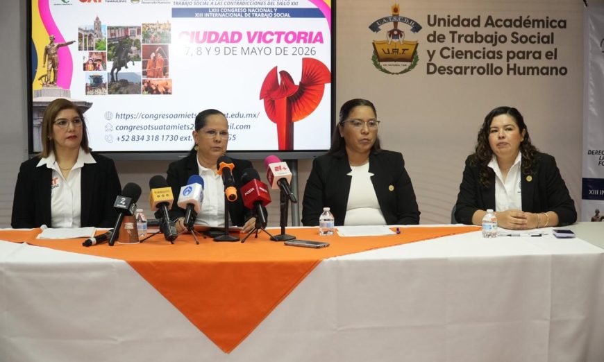 Con el fin de analizar los desafíos sociales contemporáneos y proponer soluciones innovadoras, la Universidad Autónoma de Tamaulipas (UAT) será sede del LXIII Congreso Nacional y XIII Internacional de Trabajo Social, que se llevará a cabo del 7 al 9 de mayo de 2026 en el Campus Victoria.