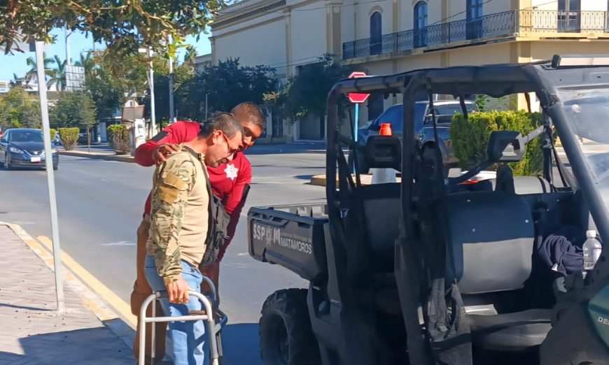 H. Matamoros, Tamaulipas.- Elementos de la Vigilancia Turístico Urbano, adscritos a la Secretaría de Seguridad Pública Municipal, realizaron una destacada labor de apoyo ciudadano en la calle Sexta e Hidalgo Norte, frente a una Farmacia. El hecho ocurrió cuando los agentes se encontraban en recorrido de vigilancia y prevención con el propósito de mantener el orden y la seguridad en la zona centro del municipio.