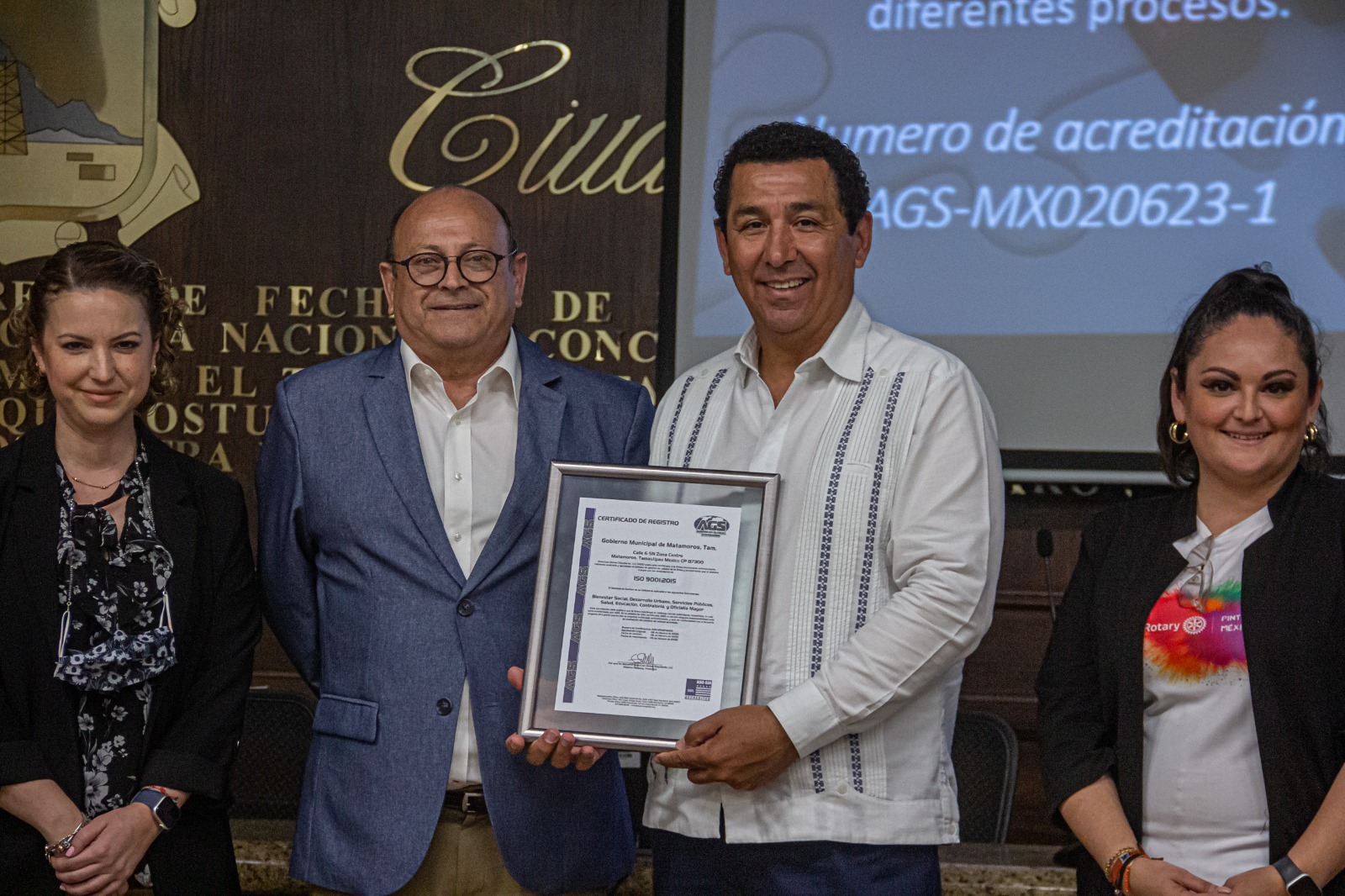 La entrega del certificado fue atestiguado por funcionarios que integran el Gabinete del Gobierno de Matamoros, así como también por directores y jefes de departamento a quienes el Alcalde mencionó que este gran logro se suma al obtenido recientemente como “Municipio Inclusivo”.