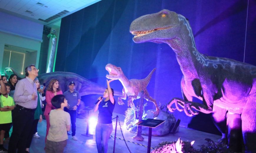 Ciudad Victoria, Tamaulipas.- El gobernador del estado Américo Villarreal Anaya, acompañado por su esposa, María de Villarreal, inauguró el museo itinerante ‘Tierra de Dinosaurios’, el cual a partir de este fin de semana y hasta el próximo 30 de noviembre, es una opción cultural y educativa más en ciudad Victoria.