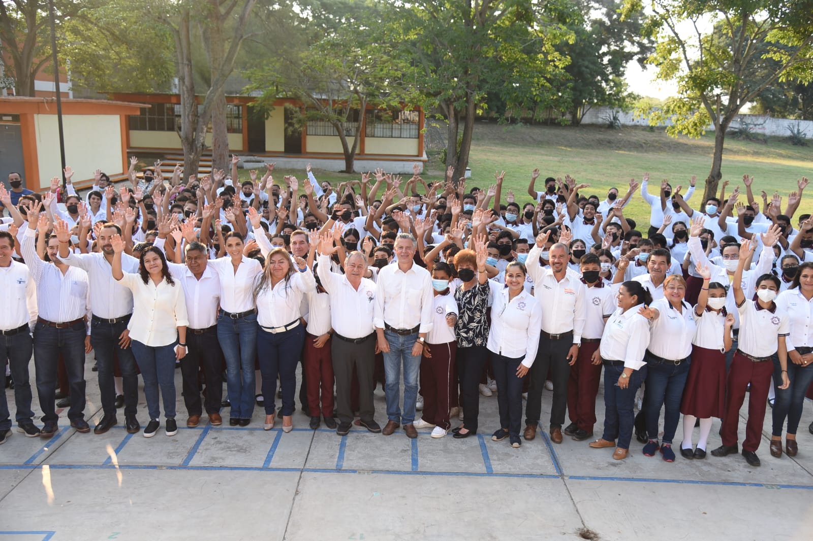 Acompañado de la Diputada Local, Nora Gómez González, el Jefe de la comuna reconoció la calidad académica de maestros y alumnos de esta institución y valoró el apoyo que los padres de familia brindan a sus hijos en su desarrollo formativo.
