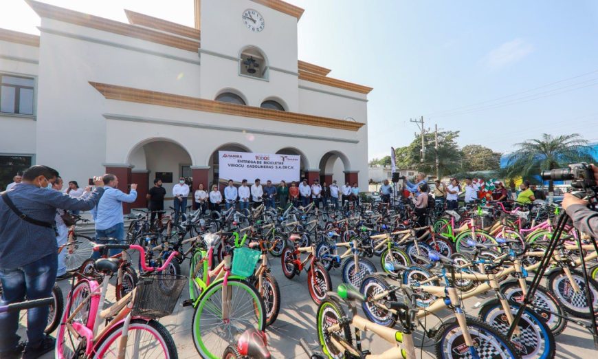 Un importante donativo de 100 bicicletas de diferentes rodadas fue efectuado por la empresa “Virogu Gasolineras” al gobierno municipal de Altamira, lo anterior como parte de la estrecha relación que el alcalde Mtro. Armando Martínez Manríquez ha establecido con el sector privado.