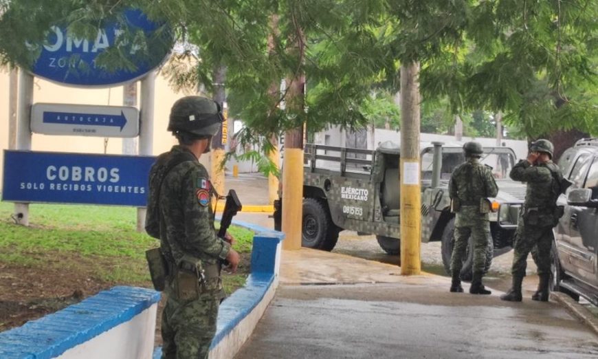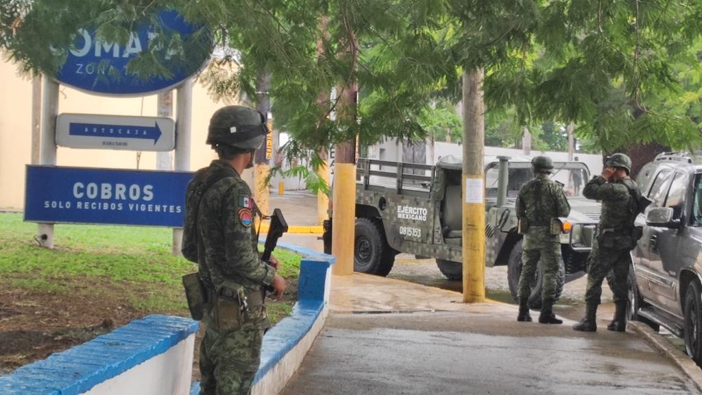 Tampico.- (Antonio Pecina) Elementos de la Policia Estatal encabezados por el coordinador en la zona sur, Francisco Baldemar Martínez apoyados con elementos de la Secretaria de la Defensa Nacional arribaron a las instalaciones de la COMAPA en la zona conurbada con el objeto de hacer una revisión a elementos de una empresa privada que brinda el servicio de seguridad.