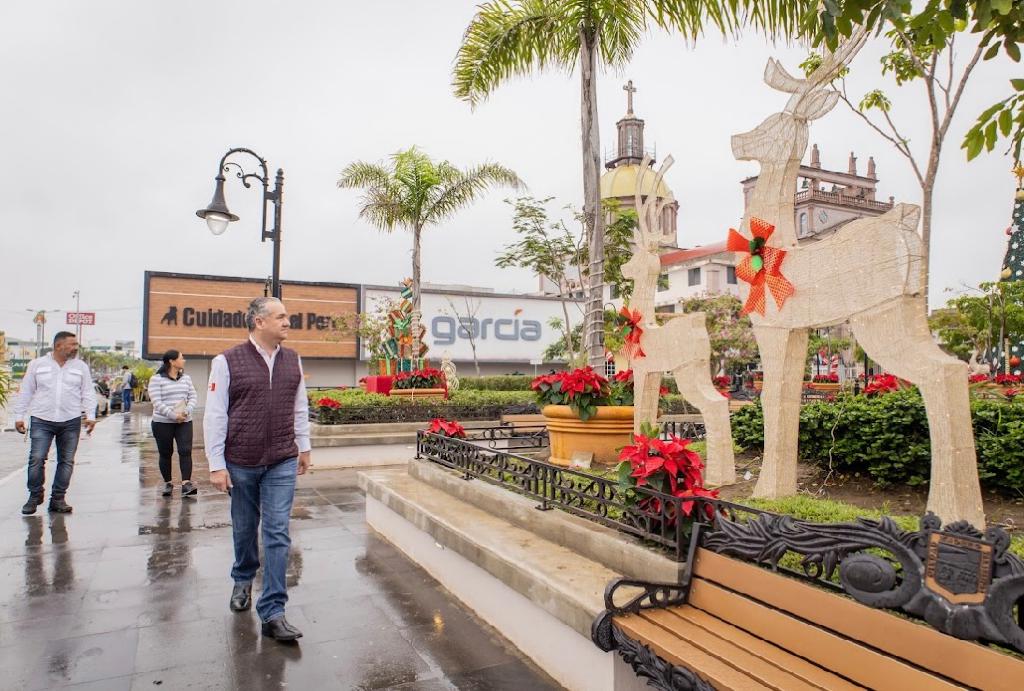 Asimismo, constató que los adornos navideños y las nochebuenas que se colocaron en esta plaza y el camellón, sigan en óptimas condiciones.
