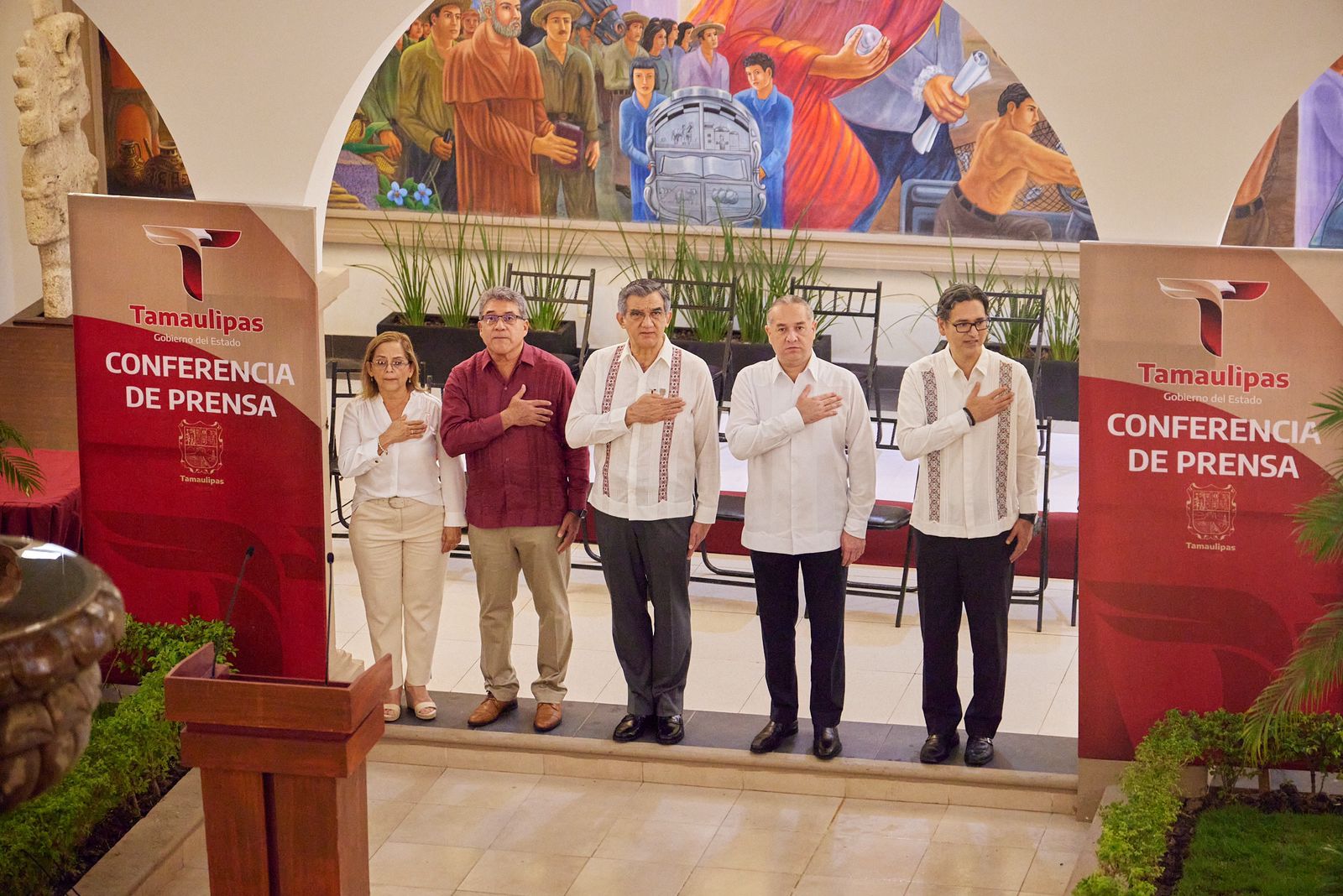 Estuvo acompañado en el presídium por el presidente municipal de Altamira, Armando Manríquez Manríquez quien dio la bienvenida al Gobernador; el alcalde de Ciudad Madero, Adrián Oseguera Kernion, el diputado federal Erasmo González Robledo y la presidenta del sistema DIF Altamira, Rosa Irma Luque de Martínez.