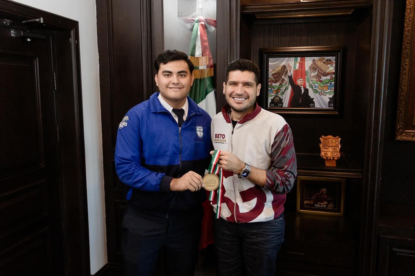 Durante su visita, Ángel Eduardo tuvo el noble gesto de obsequiar al alcalde una réplica de la medalla que ganó, detalle que el presidente municipal agradeció con mucho cariño y admiración por su esfuerzo y dedicación.