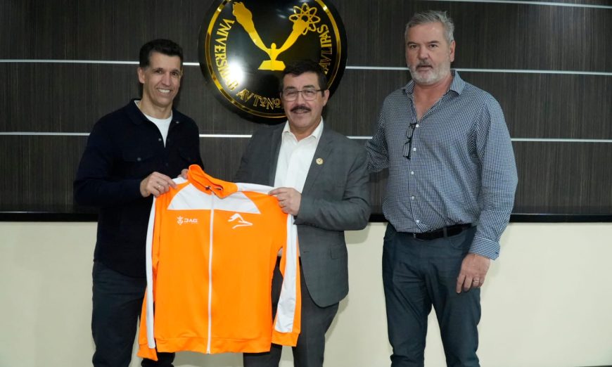Acompañado del presidente del Club Correcaminos Armando Arce Serna, el rector Dámaso Anaya, dió la bienvenida a Gustavo Díaz como nuevo miembro del equipo y de la familia UAT.